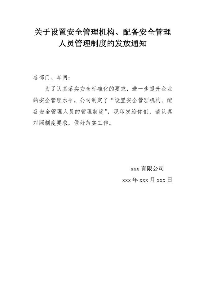 設(shè)置安全管理機(jī)構(gòu)、配備安全管理人員管理制度的發(fā)放通知doc 設(shè)置安全管理機(jī)構(gòu)、配備安全管理人員管理制度的發(fā)放通知doc