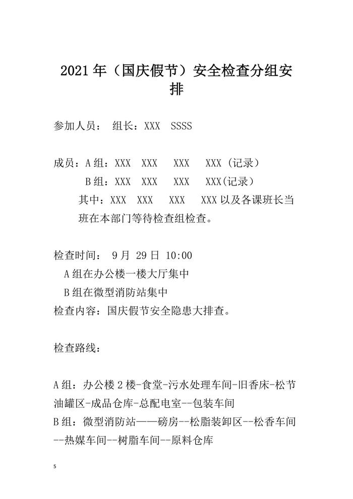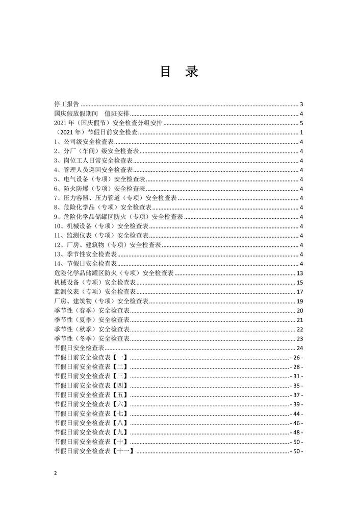 【通表】2021國慶節(jié)節(jié)前安全檢查表匯編(65頁)docx