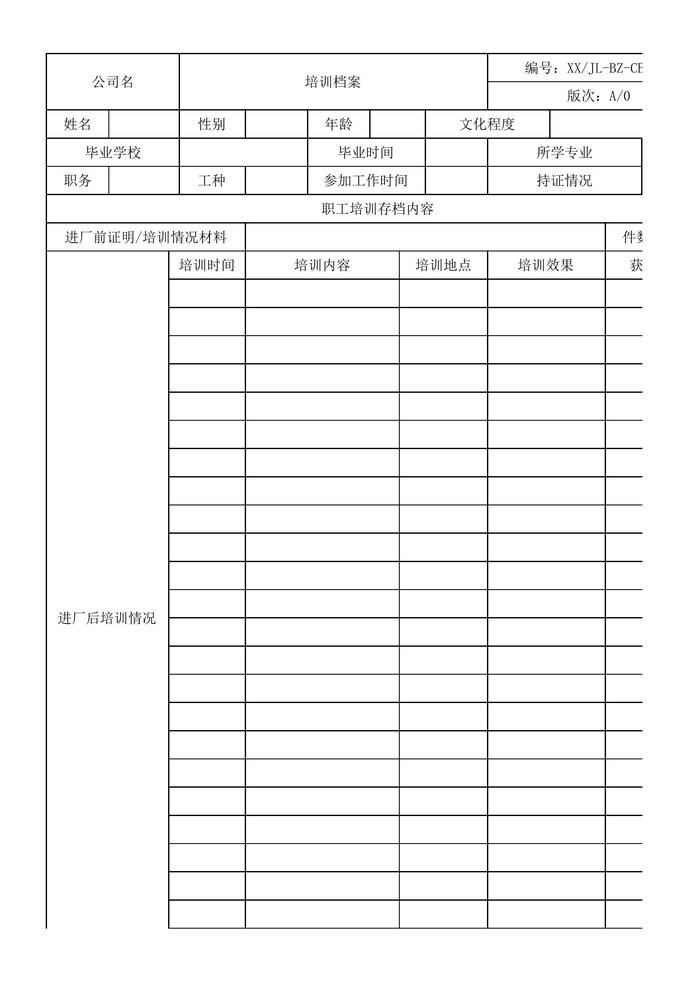 公司職工培訓檔案xlsx