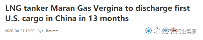 這是自中美貿(mào)易戰(zhàn)13個(gè)月后,中國(guó)接收的第一批美國(guó)LNG。