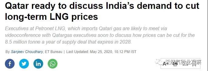 5月26日,印度時(shí)報(bào)報(bào)道,卡塔爾近日已同意與印度 Petronet LNG 公司高管進(jìn)行視頻會(huì)議,就降低 2028 年到期的 850 萬(wàn)噸/年長(zhǎng)期供應(yīng)協(xié)議展開(kāi)價(jià)格重新談判。消息透露,Petronet LNG 公司已計(jì)劃與??松梨诰拖虬拇罄麃嗊M(jìn)口 250 萬(wàn)噸/年 LNG 相關(guān)事宜進(jìn)行商議,而該價(jià)格較卡塔爾的 LNG 長(zhǎng)協(xié)價(jià)格更低。