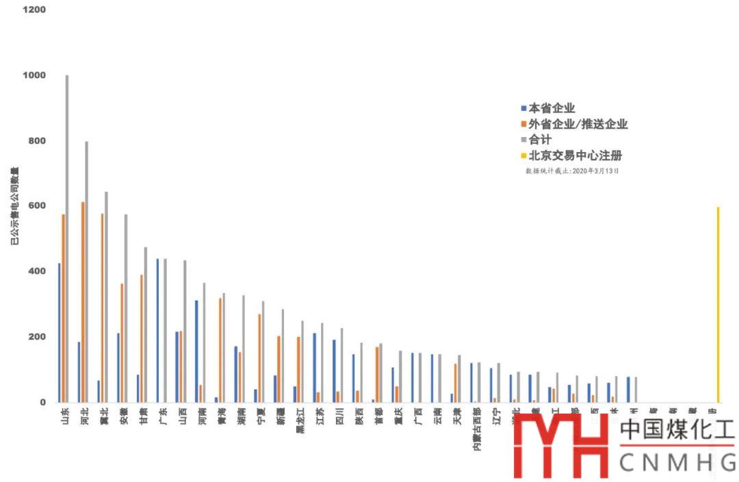 (五)售電市場蓬勃發(fā)展。截至2020年3月13日,全國各電力交易中心公示的售電公司已超過4千家,如圖5所示。當前全國電力市場注冊用戶超過十萬家且多數(shù)為大中型電力用戶,售電市場格局已經基本形成。售電市場包括發(fā)電主體與售電公司部分電力大用戶直接對接的批發(fā)市場以及售電公司與電力大用戶、中小型電力用戶直接對接的零售市場。隨著準入門檻進一步降低或完全取消,大量小型電力用戶進入零售市場,亟需通過售電公司進行負荷集成與統(tǒng)籌組織。