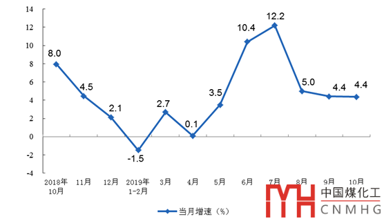 10月份,我國國民經(jīng)濟(jì)運(yùn)行總體平穩(wěn),結(jié)構(gòu)調(diào)整穩(wěn)步推進(jìn)。全國規(guī)模以上工業(yè)增加值同比增長4.7%,增速比上月回落1.1個(gè)百分點(diǎn)。1~10月份,全國規(guī)模以上工業(yè)增加值增長5.6%,增速與1~9月份持平。