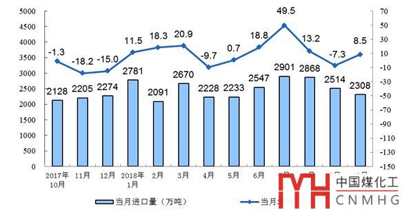 10月份,進(jìn)口煤炭2308萬(wàn)噸,同比增長(zhǎng)8.5%,上月為下降7.3%,增速由負(fù)轉(zhuǎn)正,環(huán)比下降超過(guò)200萬(wàn)噸,降幅8.2%。1-10月份,進(jìn)口煤炭2.5億噸,同比增長(zhǎng)11.5%。