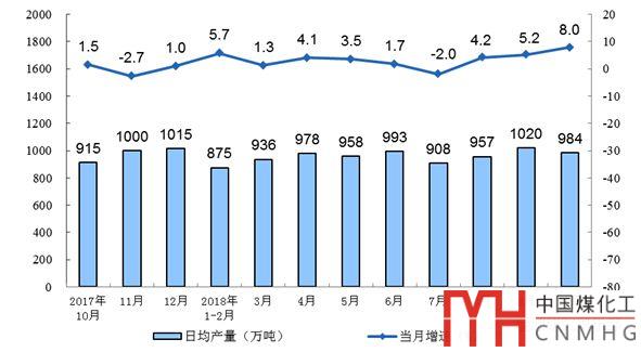 10月份,原煤產(chǎn)量3.1億噸,同比增長(zhǎng)8.0%,比上月加快2.8個(gè)百分點(diǎn),自8月份以來(lái)一直保持加快趨勢(shì)。