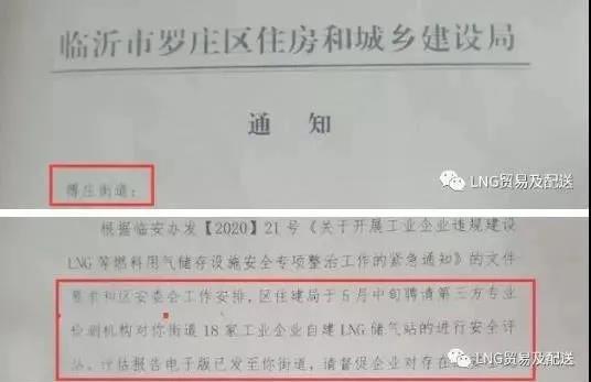 6月2號(hào)山東臨沂羅莊區(qū)住房和城鄉(xiāng)建設(shè)局通知傅莊街道:針對(duì)傅莊街道的18家工業(yè)企業(yè)自建LNG儲(chǔ)氣站進(jìn)行安全評(píng)估,評(píng)估過(guò)關(guān)的可以繼續(xù)使用,對(duì)存在安全隱患的進(jìn)行整改,期限10天,復(fù)測(cè)不合格將面臨拆除。