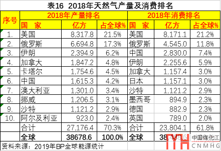 中國跟日本不一樣。日本作為島國,是全球第六大消費(fèi)國,但本身不生產(chǎn)天然氣,完全通過進(jìn)口,而進(jìn)口天然氣只能通過LNG方式。而中國,不僅是世界上第三大消費(fèi)國,同時(shí)還是第六大生產(chǎn)國(表16)。2019年中國天然氣消費(fèi)量3067億立方米、增長9.4%,同期產(chǎn)量1761.7億立方米、增長10%,天然氣進(jìn)口1332.53億立方米、增長6.9%。