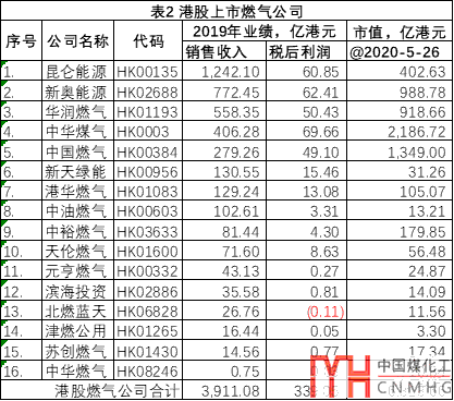 表2為16家港股上市公司2019年業(yè)績情況,合計(jì)實(shí)現(xiàn)銷售收入3911.08億港元,利潤339.05億港元,只有一家公司——北燃藍(lán)天微虧,其他均為盈利,平均銷售收入利潤率8.67%。