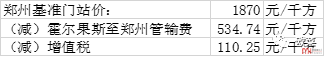 哈爾濱門站價(jià)=中為樞紐價(jià)格指數(shù)+中衛(wèi)至北京管輸費(fèi)-減哈爾濱至北京管輸費(fèi)
