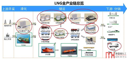 產(chǎn)業(yè)鏈下游。下游環(huán)節(jié)即最終市場用戶,包括聯(lián)合循環(huán)電站、城市燃?xì)夤?、工業(yè)爐用戶、工業(yè)園區(qū)和建筑物冷熱電多聯(lián)供的分布式能源站、天然氣作為汽車燃料的加氣站用戶、以及作為化工原料的用戶等,以及進(jìn)一步向下延伸的LNG衛(wèi)星站、加氣站、LNG加注站及冷能利用等與LNG 相關(guān)的所有產(chǎn)業(yè)。