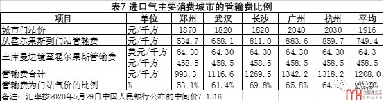 進(jìn)口天然氣主干管線的管輸費(fèi)占門站價(jià)的比例非常高(表7),以鄭州、武漢、長沙、廣州和杭州為例,從土庫曼斯坦進(jìn)口天然氣,管輸費(fèi)平均占了62.5%。這么高的管輸費(fèi)比例,即使進(jìn)口商一分錢不掙,也很難買到天然氣。只有中石油這樣央企,為體現(xiàn)社會責(zé)任,才會貼錢去進(jìn)口天然氣。修建跨國管道的主要目的是為了進(jìn)口天然氣,國內(nèi)主干管線作為國家基礎(chǔ)設(shè)施,都不應(yīng)該定價(jià)太高,否則,很難買到國外天然氣。[!--empirenews.page--]