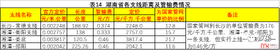 在配氣費(fèi)用中,省內(nèi)支線單位管輸費(fèi)非常高,表14為湖南省各支線距離及管輸費(fèi)情況。湖南共建有三條支線管道(長沙-常德、湘潭-衡陽、湘潭-婁底-邵陽)總計(jì)552.2公里,平均單位管輸費(fèi)用為2113.4元/千方.千公里,為西氣東輸管線至長沙單位管輸費(fèi)用176元/千方.千公里的12倍。支線管道每公里造價(jià)為干線管網(wǎng)造價(jià)1/4至1/6,但由于這種管道的管數(shù)量小,所以分?jǐn)偟矫糠綌?shù)量上的成本是要高一些,但為主干管線費(fèi)用的12倍,這種支線定價(jià)太瘋狂!