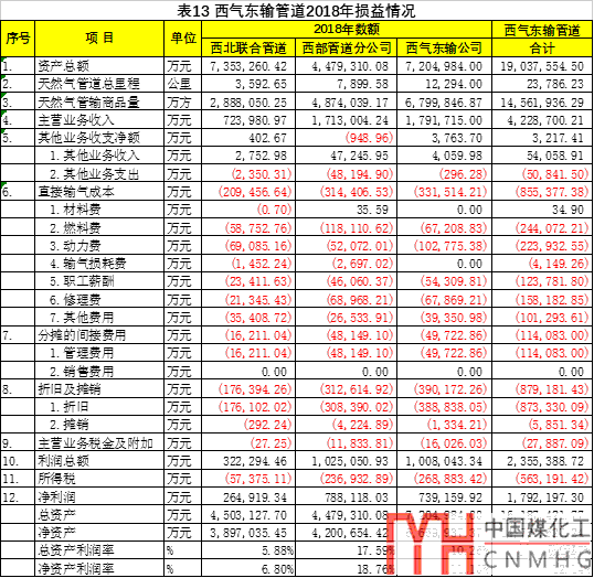 按國家關(guān)于主干管網(wǎng)核定管輸運(yùn)輸價(jià)格的規(guī)定,準(zhǔn)許收益率按管道負(fù)荷率不低于75%、稅后全投資收益率8%的原則確定。中亞進(jìn)口天然氣全部由西氣東輸管線(二線和三線),但到中衛(wèi)后,有些也經(jīng)過原來西氣東輸一線的西區(qū)東輸公司輸配氣。表13資料來源于中石油網(wǎng)站管網(wǎng)信息公開部分。
