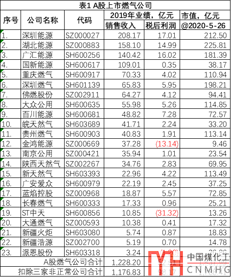 另一方面是,天然氣下游企業(yè)主要是燃?xì)馄髽I(yè),卻是個(gè)個(gè)賺的盆滿缽滿。據(jù)不完全統(tǒng)計(jì),54家大型燃?xì)夤?,其?9家上市燃?xì)夤荆ɑ蛑鳡I業(yè)務(wù)中包含燃?xì)鈽I(yè)務(wù)的公司)和15家非上市燃?xì)夤?,涵蓋了中國城鎮(zhèn)燃?xì)夂凸ど虡I(yè)燃?xì)夤?yīng)的90%以上,供氣量(管道氣)的95%以上。39家上市公司中,23家在A股上市,16家港股上市。
