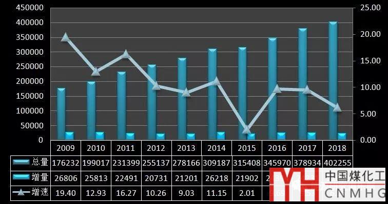 截至2018年底,全國全口徑發(fā)電裝機容量19.0億千瓦,同比增長6.5%,較上年降低1.1個百分點。新增發(fā)電裝機容量12439萬千瓦,比2017年有所收縮,但發(fā)電能力延續(xù)了近六年新增容量超過億千瓦的趨勢。