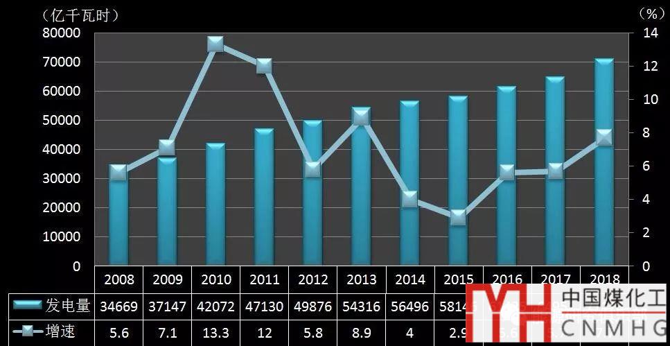 據國家統(tǒng)計局數據,2018年,全國發(fā)電量71118億千瓦時,同比增長7.7%,增速比上年提高2個百分點。其中,火電增長6.7%,水電增長3.0%,全國并網太陽能發(fā)電、風電、核電發(fā)電量同比分別增長50.8%、20.2%、18.6%。