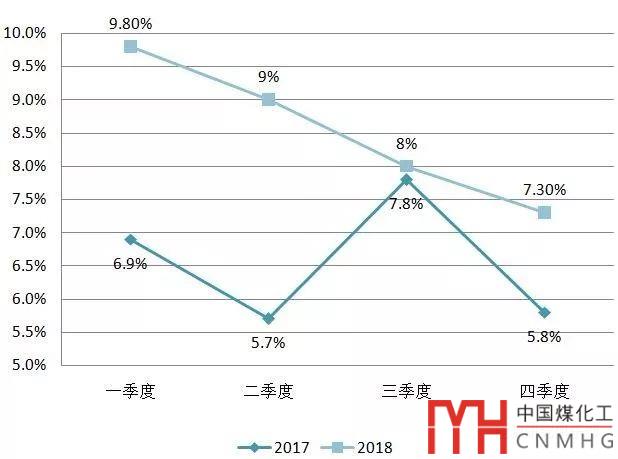 圖5-8 2017~2018年全國全社會用電量季度增速