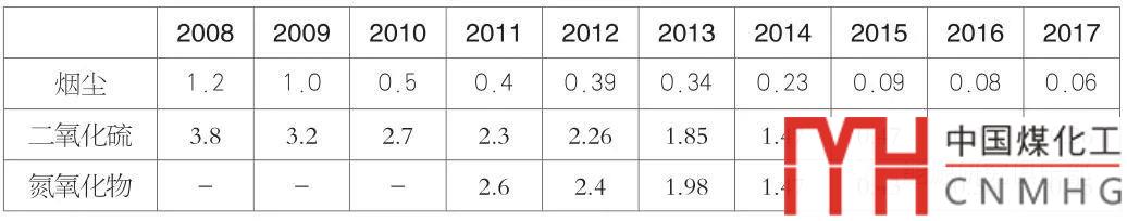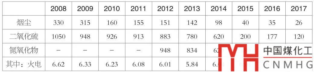 表5-7 2008~2017年電力行業(yè)排放總量情況(單位:萬噸)