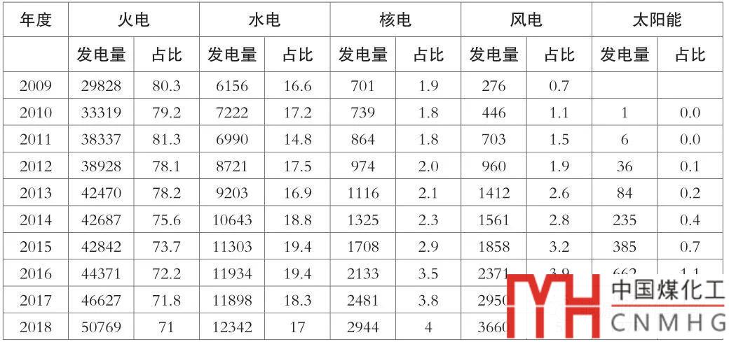 表5-1 2009~2018年全國發(fā)電量總量構成(單位:億千瓦時,%)