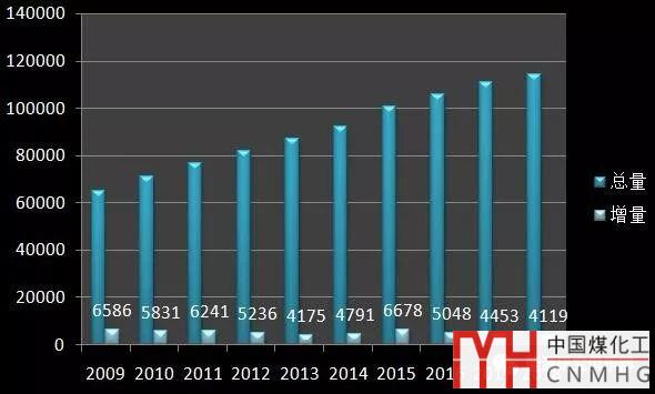 圖5-6 2009~2018年火電裝機和新增裝機情況(單位:萬千瓦)