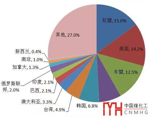 圖2 2017年中國貿(mào)易伙伴國貿(mào)易額占比