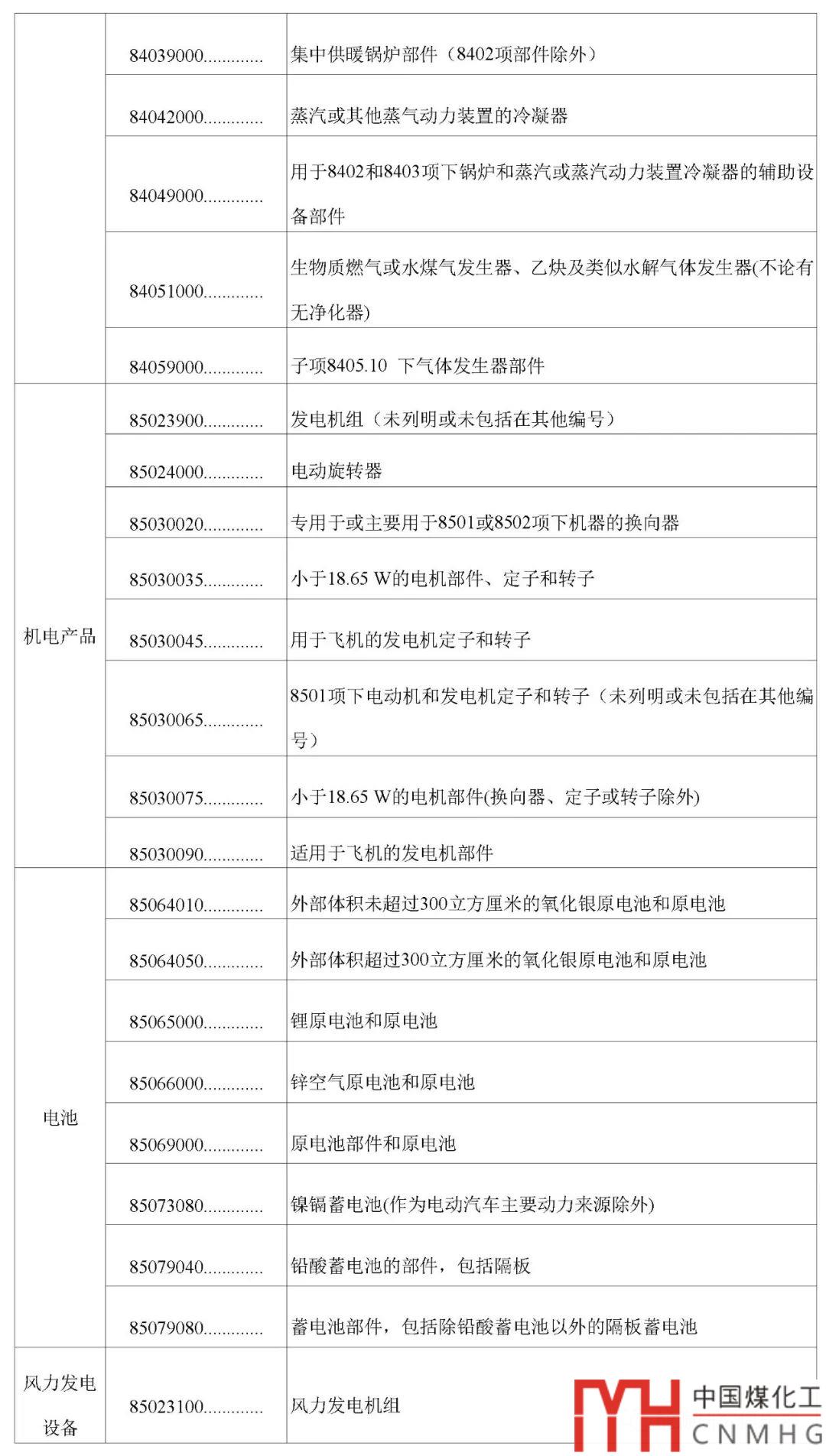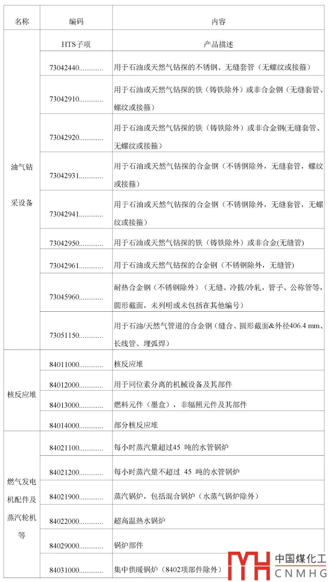 表3 美國對中國能源領(lǐng)域征稅的部分清單