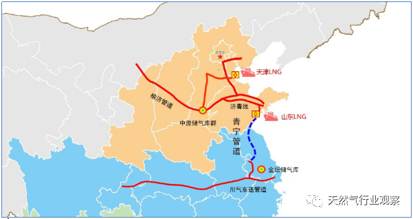 這條青寧線可不單純是為了將中石化青島接收站的氣送出去,更重要的是青寧管道的建設將實現(xiàn)中國石化川氣東送管道、山東和江蘇省管網(wǎng),青島、天津LNG接收站,金壇、文96、文23儲氣庫等主要儲運設施的互聯(lián)互通,從而實現(xiàn)華北、華東兩地天然氣資源靈活調度和應急互保。