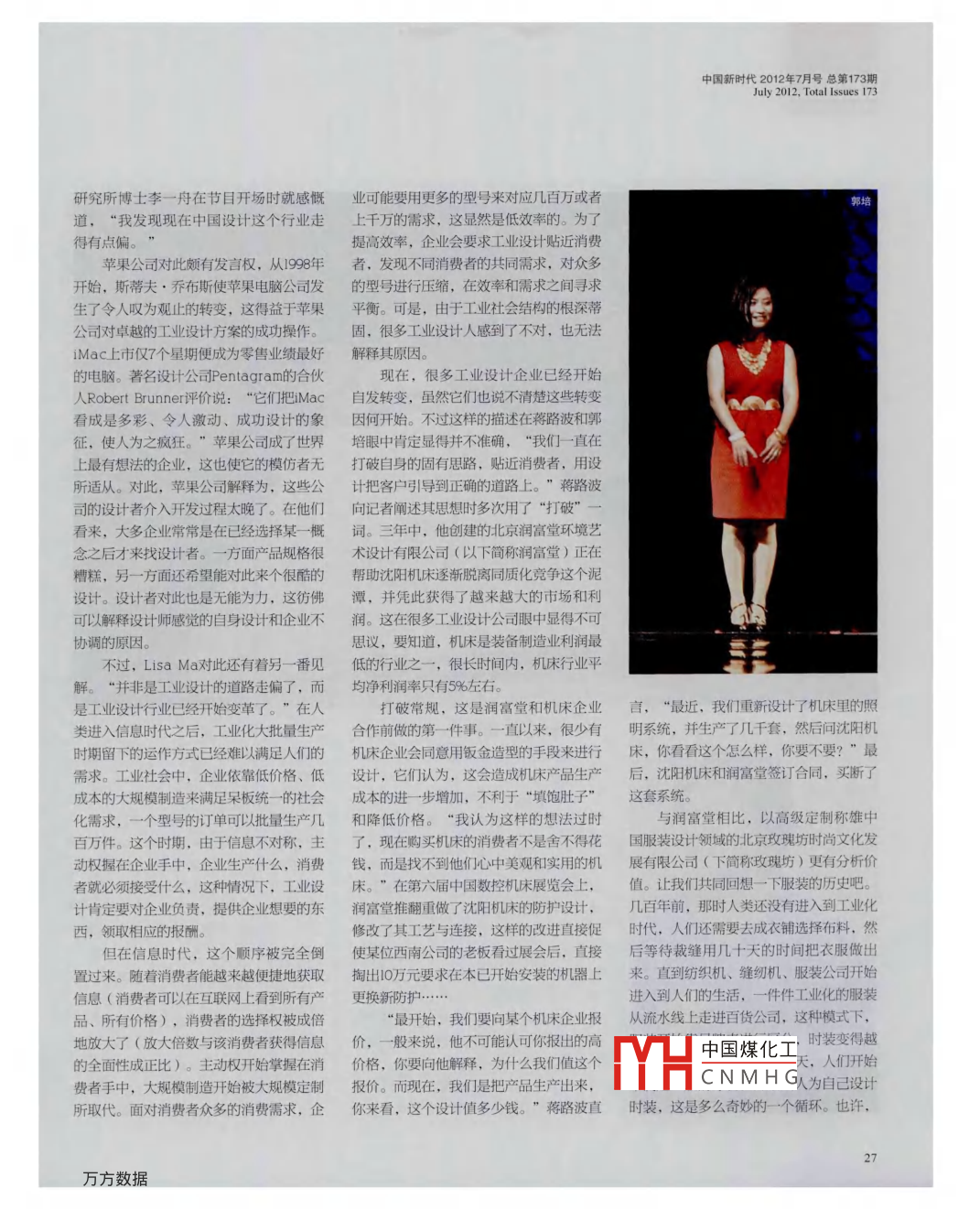 封面故事Cover Story誰在逡計(jì)中國①①O中國煤化工CNMHG中國新時(shí)代2012年7月號(hào)總第173期uly 2012, Total Issues 173在8000公里的高空飛行中, Lisa ma腦中繁復(fù)的念頭讓她在人類進(jìn)入信息時(shí)代之后,幾乎忘記了長時(shí)間固定坐姿引起的不適。航班快要落地前,她想通了接下來在中國可能面對(duì)的大多數(shù)“關(guān)節(jié)”?!拔冶仨氄J(rèn)王業(yè)化大批量生產(chǎn)時(shí)期留下的運(yùn)真地面對(duì),它我來,不僅是理想,也是向人證明己作力式已經(jīng)難以滿足Lisa ma是一名自由設(shè)計(jì)師,在這之前,她是世界上最富盛名的設(shè)計(jì)公司之五角設(shè)計(jì)聯(lián)盟的設(shè)計(jì)師,并在人們的需求這家企業(yè)做了美國航空公司、倫敦自然歷史博物館、猶太人遺產(chǎn)博物館等設(shè)計(jì)。2009年至2011年間, Lisa ma開始與工業(yè)社會(huì)中,企業(yè)依靠低價(jià)格T- Mobile的未來實(shí)驗(yàn)室合作,共同研究可能觸及未來領(lǐng)域的設(shè)計(jì),這也使她在 TED Global20展中被邀請(qǐng)為TEDT- mobile低成小的大規(guī)模制造來滿足Workshop的主持人。和 Mobile合作是一種新的雇員方式,想想看,我們想呆板統(tǒng)一的社會(huì)化需求,要完成的事情交叉存在,我們?cè)诮徊娴念I(lǐng)域進(jìn)行合作,卻又個(gè)型號(hào)的訂單可以批量生產(chǎn)彼此保持相對(duì)的自由?!?Lisa ma對(duì)自己能自由地設(shè)計(jì)頗為自得。當(dāng)然,她的自得也頗讓其家人頭痛。 Lisa ma的父親就用幾百萬件?!俺鞘虚g的小老鼠”這樣的綽號(hào)來對(duì)她打趣,不久前, Lisa ma在深圳完成了一項(xiàng)被她稱之為“ Carnification”(記者按:大信息時(shí)代里概是指工人業(yè)余從事農(nóng)業(yè)工作)的設(shè)計(jì)。我認(rèn)為,在不久的將來,中國工人將不得不面對(duì)一個(gè)新大規(guī)制造開始被大規(guī)模定制的問題。在新的科技產(chǎn)品替代舊有產(chǎn)品后,這些固有企業(yè)的工人可能失去工作。而我希望這個(gè)設(shè)計(jì),能緩解這種情況給失業(yè)所取代者帶來的傷痛?!彪m然這個(gè)想法顯得沉重,但iaMa語氣中還是顯得輕松而有信心。面對(duì)消費(fèi)者眾多的消費(fèi)需求可事實(shí)上,設(shè)計(jì)并不像 Lisa ma表現(xiàn)得那樣輕松。設(shè)計(jì)企業(yè)對(duì)開始一項(xiàng)設(shè)計(jì)項(xiàng)目極其審慎,消費(fèi)者(不論是政府、企業(yè)企業(yè)可能要用更多的型號(hào)還是個(gè)人)通常又對(duì)最終的設(shè)計(jì)產(chǎn)品頗為挑剔。設(shè)計(jì)者經(jīng)常要來對(duì)應(yīng)幾百萬冒著最終設(shè)計(jì)被全盤打回的風(fēng)險(xiǎn)開始投入資金和人力。而在中國,設(shè)計(jì)企業(yè)的狀況一度更為窘迫。由于中國設(shè)計(jì)一直依附在或者上干的品求中國制造的身后,從未得到市場的認(rèn)可,一位制造企業(yè)領(lǐng)導(dǎo)甚至告訴記者:“給設(shè)計(jì)公司一張國外產(chǎn)品的照片,他們?cè)谏厦娓母木托辛??!边@樣的情況下,很多設(shè)計(jì)者經(jīng)常在拿不到大額尾款甚至定金的情況下就要開始項(xiàng)目。Lisa mal的情況并不比這些中國設(shè)計(jì)企業(yè)好多少,她需要自己付款來為自己的設(shè)計(jì)項(xiàng)目買單。最后她選定了一家生產(chǎn)游戲機(jī)手柄的中國企業(yè),開始設(shè)想讓工人業(yè)余從事農(nóng)業(yè)工作的可能性當(dāng)這些員工在工廠旁閑置的土地上,用他們從祖輩手中傳承下來的技藝后自己食用或:本刊記者郭樹涵出售,減輕他們的我的設(shè)計(jì)對(duì)了,它TYH中國煤化工請(qǐng),我知道CNMHG總結(jié)中這樣寫道:“這項(xiàng)研究一旦有所突破,將解決在Pad和inec時(shí)代游封面故事Cover Story題不得不選擇分道揚(yáng)鑣的創(chuàng)業(yè)伙伴很多成了鄭州室內(nèi)設(shè)計(jì)業(yè)的佼佼者,名片上印有創(chuàng)意總監(jiān)的頭銜,拿著過百萬的年薪…對(duì)此,孫禾開誠布公地告訴記者:“我對(duì)商業(yè)并不熟悉,這也是我之前失敗的原因?!睂O禾原來的創(chuàng)業(yè)伙伴對(duì)他的自我檢討很認(rèn)可,他們認(rèn)為,孫禾過于追求裝修的完美,在成本上很少考慮。“現(xiàn)在,我想通了失敗的關(guān)鍵,以后再干,就和一個(gè)懂商業(yè)、能談單的人搭伙,到時(shí)候,我把錢全存在他那里,到年底再去結(jié)賬?!弊詈?孫禾笑著說出了他未來的打算。事實(shí)上,孫禾選擇在2005年開始創(chuàng)業(yè)并非完全是他所說的“心血來潮”。在整個(gè)中國工業(yè)設(shè)計(jì)的歷史上,2005年是設(shè)計(jì)人員增長到30萬人,各個(gè)大學(xué)也基本個(gè)極其重要的年份。經(jīng)過之前十幾年的發(fā)開辦了相關(guān)學(xué)科;從消費(fèi)者來看,隨著股展,中國工業(yè)設(shè)計(jì)開始進(jìn)入起飛階段??v市的暴漲和百姓生活水平的提高,消費(fèi)者戲機(jī)手柄被淘汰之后,工人所面臨的就觀中國設(shè)計(jì)大事圖表就會(huì)發(fā)現(xiàn),自1995年開始對(duì)設(shè)計(jì)出的產(chǎn)品表現(xiàn)出濃厚的興趣。業(yè)問題,同時(shí)也將在某種程度上級(jí)解中1月23日中國第一個(gè)設(shè)計(jì)學(xué)院成立到20042005年,中國工業(yè)設(shè)計(jì)年產(chǎn)值約為300國的產(chǎn)業(yè)結(jié)構(gòu)過于依賴西方科技需求的年無錫市創(chuàng)建了我國第