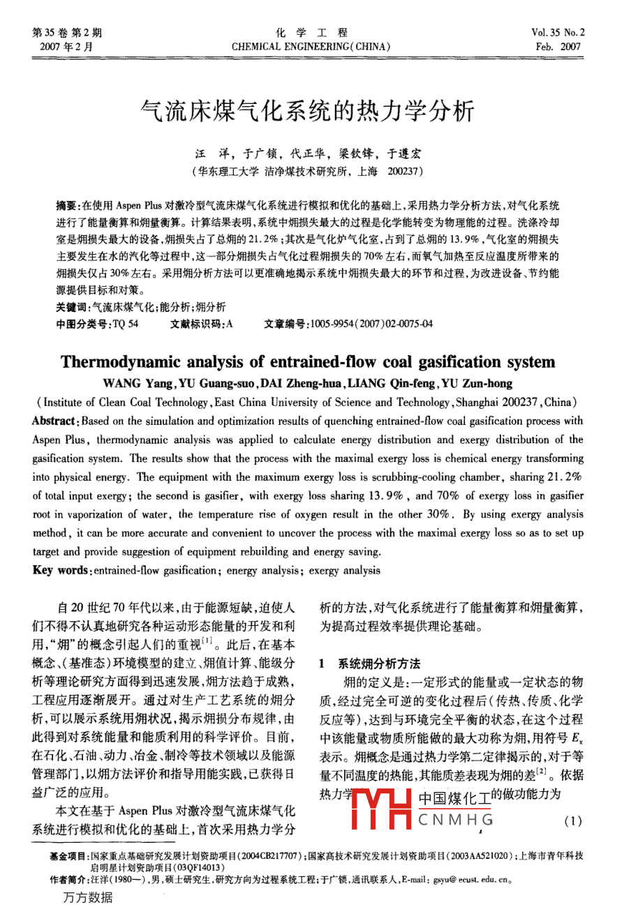 氣流床煤氣化系統(tǒng)的熱力學(xué)分析