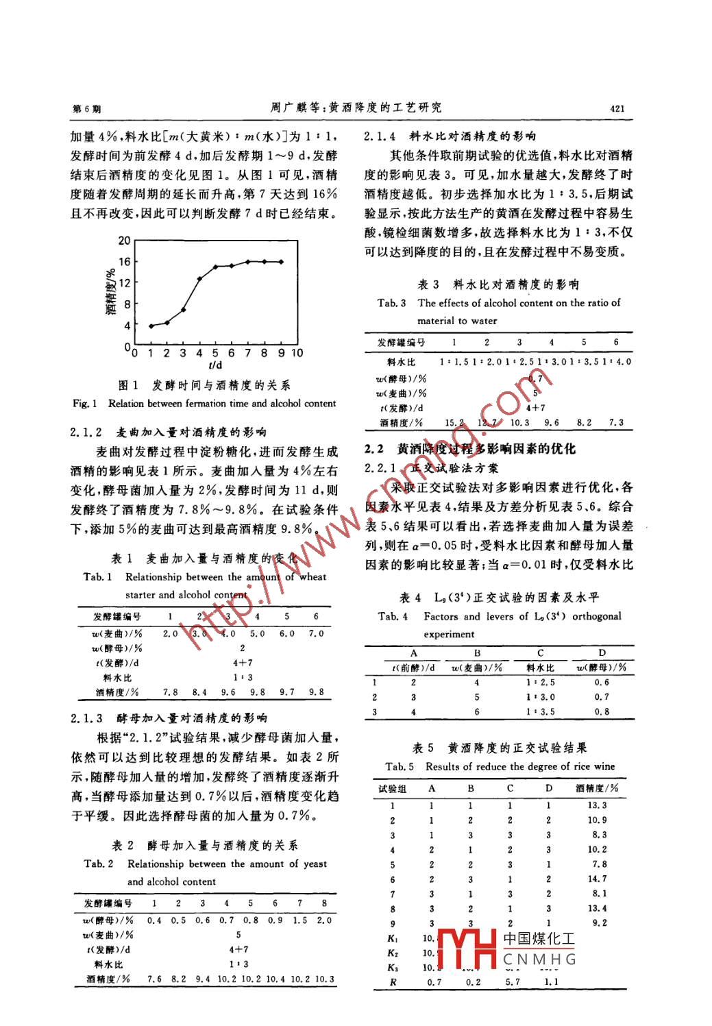 黃酒降度的工藝研究 黃酒降度的工藝研究