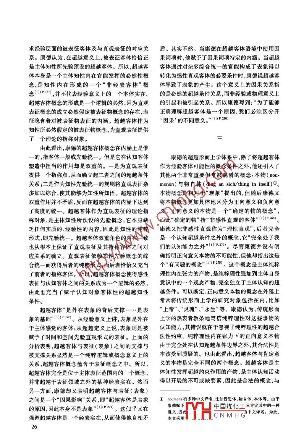 2013年11月內(nèi)蒙古社會(huì)科學(xué)(漢文版)Nov.2013第34卷第6期INNER MONGOLIA SOCIAL SCIENCESVol 34 No 6康德對(duì)形而上學(xué)的超越主義改造亓學(xué)太(南京郵電大學(xué)馬克思主義學(xué)院,江蘇南京210023)[摘要]康德在《純粹理性批判》開(kāi)篇就表明了該著作的形而上學(xué)關(guān)懷,并在序言中聲稱他所構(gòu)造的形而上學(xué)體系徹底超越和改造了傳統(tǒng)的形而上學(xué),創(chuàng)造了形而上學(xué)中的“哥白尼革命”。然而,究竟康德在什么意義上對(duì)傳統(tǒng)形而上學(xué)進(jìn)行了革命性的重塑,我們又該如何詮釋康德的超越唯心主義命題,這是學(xué)術(shù)界長(zhǎng)久爭(zhēng)論的一個(gè)問(wèn)題。本文的主旨即在于回答這一問(wèn)題,試圖從一個(gè)新的視角詮釋康德的超越形而上學(xué)。[關(guān)鍵詞]形而上學(xué);康德;客體;超越主義[中圖分類號(hào)]B516.31[文獻(xiàn)標(biāo)識(shí)碼]A[文章編號(hào)]1003-5281(2013)06-0023-06康德在《純粹理性批判》開(kāi)篇就表明了該著作構(gòu)問(wèn)題上,康德的超越唯心主義將時(shí)空視為先驗(yàn)的的形而上學(xué)關(guān)懷,并在序言中聲稱他所構(gòu)造的形而認(rèn)知要素,認(rèn)為時(shí)空構(gòu)成了主體對(duì)客體能夠加以感上學(xué)體系徹底超越和改造了傳統(tǒng)的形而上學(xué),創(chuàng)造覺(jué)的超越條件。主體通過(guò)感性直觀建立客體的第了形而上學(xué)中的“哥白尼革命”1(P23)。然而,究個(gè)階段,是主體將時(shí)間和空間的先驗(yàn)結(jié)構(gòu)賦予給竟康德在什么意義上對(duì)傳統(tǒng)形而上學(xué)進(jìn)行了革命定的物質(zhì)從而使其成為表征的過(guò)程,由此構(gòu)建起表性的重塑我們又該如何詮釋康德的超越唯心主義象的結(jié)構(gòu)或形式(P13)而也正是由于表象的形命題,這是學(xué)術(shù)界長(zhǎng)久爭(zhēng)論的一個(gè)問(wèn)題。本文的主式化過(guò)程是主體認(rèn)知將時(shí)間和空間的先驗(yàn)形式主旨即在于回答這一問(wèn)題,試圖從一個(gè)新的視角詮釋動(dòng)賦予對(duì)象的過(guò)程??档碌某叫味蠈W(xué)。康德構(gòu)造的超越唯心主義復(fù)雜性在于,它是超越唯心主義與經(jīng)驗(yàn)實(shí)在主義的二重體2N。經(jīng)驗(yàn)實(shí)在主義強(qiáng)調(diào)經(jīng)驗(yàn)層面上客體的實(shí)在性,認(rèn)為相對(duì)于主體的主觀感覺(jué)事件而言,客體并非主體主觀康德的超越形而上學(xué)在哲學(xué)史上是獨(dú)樹(shù)一幟意識(shí)之內(nèi)的純粹現(xiàn)象學(xué)事件,也不能化約為純粹的的,這體現(xiàn)在他對(duì)形而上學(xué)的獨(dú)特改造。其超越哲現(xiàn)象學(xué)事件,而是外在于主體主觀意識(shí)形態(tài)的“普學(xué)否定了傳統(tǒng)形而上學(xué)對(duì)客體是否本體實(shí)在的終遍性事件”。客體的普遍性保證了它之于個(gè)體主極關(guān)懷,而轉(zhuǎn)向?qū)χ黧w認(rèn)知本身的分析,致力于回體的必然性,并且在這一意義上具有了實(shí)在性的內(nèi)答客體如何成為可能這一中心問(wèn)題。在客體的建涵。所以,康德經(jīng)驗(yàn)實(shí)在主義立場(chǎng)中的實(shí)在概念并[基金項(xiàng)目]教育部人文社會(huì)科學(xué)研究青年基金項(xiàng)目“當(dāng)代西方元倫理學(xué)的前沿問(wèn)題專題研究”(編號(hào):0C720032)[收稿日期]2013-05-16[作者簡(jiǎn)介]亓學(xué)太,男,南京郵電大學(xué)馬克思主義學(xué)院副教授。中國(guó)煤化工CNMHG非一個(gè)傳統(tǒng)形而上學(xué)的本體論概念,而在內(nèi)涵上等具有外在的實(shí)在性。同于普遍性和必然性。他提出,客體的普遍性、必康德對(duì)經(jīng)驗(yàn)唯心主義的批判和對(duì)經(jīng)驗(yàn)實(shí)在主然性和實(shí)在性恰恰是由客體的超越唯心性所決定義的第二個(gè)論證建立在他對(duì)前者所持有的主體內(nèi)的,因此他的超越唯心主義為經(jīng)驗(yàn)實(shí)在主義提供了在感覺(jué)意識(shí)直接性假設(shè)的指責(zé)。按照這一假設(shè),主立論的基礎(chǔ)??档轮饕窃谂薪?jīng)驗(yàn)唯心主義的體所能夠直接感知的僅僅是自身內(nèi)在感覺(jué)之內(nèi)的過(guò)程中闡述了其超越唯心主義和經(jīng)驗(yàn)實(shí)在主義之意識(shí)觀念,內(nèi)在感覺(jué)之外的事物無(wú)法為主體直接感間的作用機(jī)理。知,因此主體對(duì)它們的知識(shí)充其量是基于內(nèi)在感覺(jué)康德提出,經(jīng)驗(yàn)唯心主義的錯(cuò)誤在于僅僅局限的意識(shí)觀念以及因果論原則而推論出的結(jié)果。康于內(nèi)在感覺(jué)事件的經(jīng)驗(yàn)實(shí)在性,而否定了依賴于超德對(duì)這個(gè)假設(shè)的擔(dān)憂是,如果僅僅把我們知識(shí)的直越條件的外在感覺(jué)客體的經(jīng)驗(yàn)實(shí)在性,根本原因在接和可靠來(lái)源限定于現(xiàn)象學(xué)事件,而把我們對(duì)外部于它沒(méi)有形成對(duì)時(shí)間和空間概念的正確理解。內(nèi)世界的認(rèn)知視為推論知識(shí),就無(wú)法根本上擺脫懷疑在感覺(jué)的經(jīng)驗(yàn)事件包括意識(shí)之內(nèi)的所有觀念,主體主義的陰霾,這在休謨對(duì)因果論的批判中已經(jīng)得到的內(nèi)在感覺(jué)通過(guò)感知自身意識(shí)中的觀念在時(shí)間上了徹底的彰顯。為此,康德直接否定了這一假