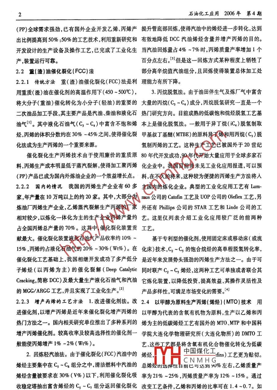 丙烯生產(chǎn)工藝技術(shù)進(jìn)展