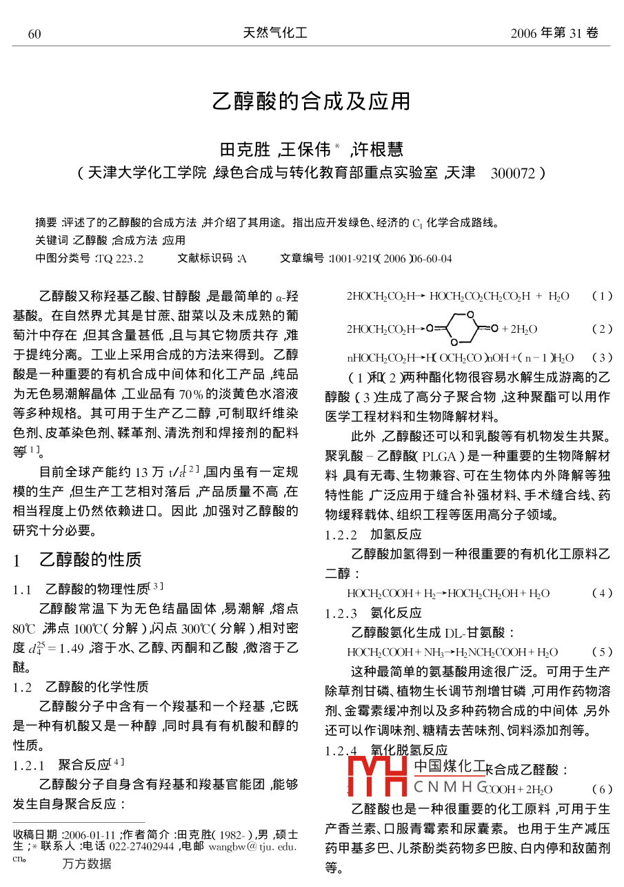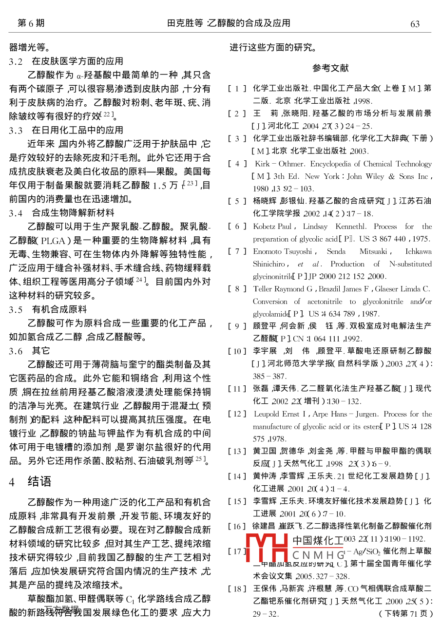 乙醇酸的合成及應(yīng)用