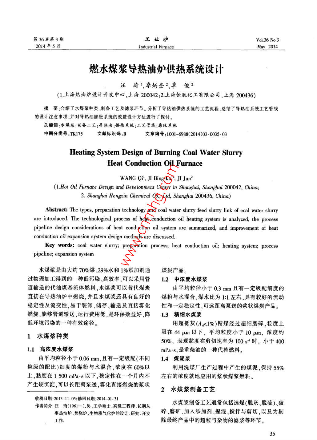 燃水煤漿導(dǎo)熱油爐供熱系統(tǒng)設(shè)計(jì)