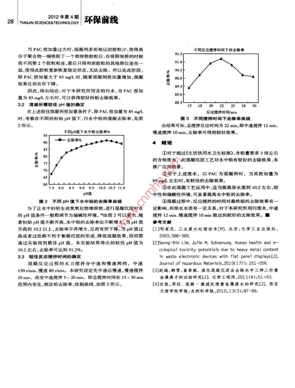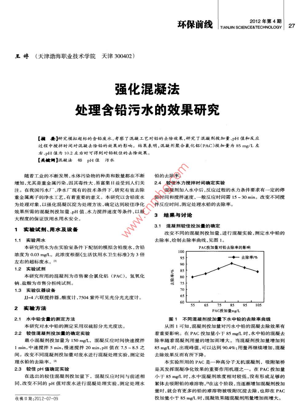 強(qiáng)化混凝法處理含鉛污水的效果研究