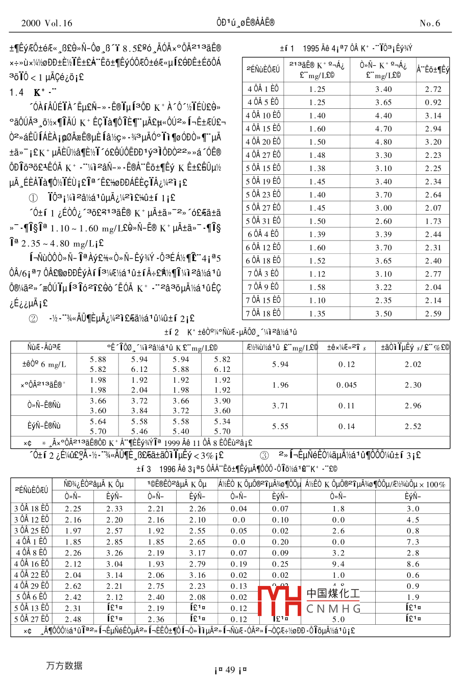 1 1. 0 EBAAE⑥2000Vol.16CHINA WATER WASTEWAterNo 6·EA"E6土Ey中A4aa”4°元000,±eLeAA£"3aAA0|-1axU3s-° bAI 3nAe4140120001aAEa0·c0E81A0Aμ HADSA0£aBE60E1 UAIERE1£060%-1ASO啊0±N-AaE EOlHI3HA^E土 EyEy34Y2O DDAE031H2e016AE2-A“E土Ey2a- AiEDDDoj eu0ADE2c啊AE6±yμA060,±ela36 AEo TAtuA-sE10%0EN》AEEA“E土Ey2a·“E00t自094-0AaA£TU991.4TATx±eEAe£C們A0A±aA£=1000-4602200006-0048-03N--EAE±EyEc0、N-” AaE BLu=0UED1yEaEC!uA2aT“土Toμ¥6N--E60EDB1y3iODE0EOUEB 00o-ciec HEOESHECEiOE1N-2-E02IT ODVE2, 0-c022, 3AHiEH1035003c0A CL, mo NacIOicAEuA±A足0023E×÷×41BE后EaA10 AOuEOC14AA0 AODHAlcEu l0Aa6 aNupaE0E0uAO6000. eifA Eo+yule0 yEeniauA cI-eA.A.2每AA℃E6± Ey aEc,BF°AE06U0°c0E80AuA2uaE土N-,Ee0GEy10B61Eu0aa1、E0c0E0±Ey、BE0016 EUEAA+0E8:A,Na0.BAE±Ev忙土0 AfCEECA E6Eyy.86uAa1.cal0a060%.E± Ey>annul1£ooFEyAo-E'l0OEuAANTEn aoo/OzER"1AiOOAAn aESDSE- 1.2 HquvAAE2, AuoUIcEuliHAi0OFEE4EN--EBuAA"Eo+EyoaoDμu4AEuA2a¨tEh|oμ中¥ igiEUi&14E· iE OAIAUEo TAiHAiooFo, teifAEp£0N-Eip|0DDe0aEeE8HAAφrEeA“E6±EyA2a.“0 )D UazOE0U,÷3g213aE8EOOEAoN--EooEDDCe20uA210iE3 i-1-y2-2a0uAva Ch 20amaE1 EOHAuquAAEOOVAOEAi lautlHlaEe+, ODD1260002N-》EAE土EyA2a·ACE02E1 aCHAEA÷108E0AA·a6 Faucet41 ho DD+E12IEC UO±00uAiEAEO2a2 UEu9U OμA| 02lIfEAEμEl103§01996Ae1循環(huán)水濃縮倍數(shù)的檢測(cè)方法370A0Aμc以AE·“AEaE0Ha10土iA£Ax÷>0N-a-EBTHiaEO3EOEDDE+EA Eo+EyuAV412a0, a x/4HA213aE0iff83ny2-EBHAucH4AEEC2"f2, lEHAehaEC. u%4YN-m-E8ODA3000xe-OHAA"E OA30DO0EOe2·sTa154-291gS/em⊥N-EuAμcuAE2Ec98EBA0×6.0u框0A0900uA122EAe2N-iEyN-1s01330613"uS/cmi608-618 uS/cmiEOO'EEHtN--EQHAucuv4AEK= CN/C10313aEμAμcuAE02TEpA36 HA K oux1EcE0 CN-ITIN-》E60DA=0》xe-μA2”、BE土N-E同cuAE,B0213aE回山山AEpE土£Cn213aE0DA30×e·0AK OH02,a,3u啊00u0A2aAE6± EyuAA30×e0Eec1.3si0EUOEDDODFaEuiovbEc40EE d T%40E8 HAiAj anyi ca中國煤化工m0A1 eEaNI IuADEE8AHEceiouA EEAiEoo'Ec6m aN; 0AHAxe-OoD CI"ic AEeCNMHGOA A- " 1412aE+EN-2-EBCa+i6i02ik9lHcHvAEHE ifAEO+(EyEy 4Y30 I0AEOi3E2"fI CoNI OOESOeuA 10 logo0A00°N0 AEOAUDA IEEOx÷0x0B士ETE土A"E6i 48 ia2000Vol.16±yE0土eE、BeN-0BT8.5£80A0Ax°0A213aE±11995A64i370AK*·I0°EyY÷》0x2420士EIE±EA"E6±Ey0EO± BfE HIfODE土E0A36l0<1 ACei6i£1.4K+40A1E01.2OAIAUEIA Eμ£N-yE||3OK+Ao"EUE64 0A 5 EO1.28660P任,的3.1406dnA402061150tam"iEK'HAEUhaTE/" ya iOD022mma'OEB 40A27 E01.480B6964E0AK+·“2aN: EOA Eo+Ey K E+6U50A15E的3.10HA,EEA|avoH|EUi£|aE£0 DDAEECIAil2ij£0A19E01.45①l03i2aa1uAi2ie0±iiE0A23E00土i1E0o36213aEKA土a,2》“0£aa50A27E01.452.0711.0-1.60mg/2E6kuas50361.02.601.7360A4E62.4412.35~4.80mg/Lj£0A12E0701006yy.6EA2415601861.520A/6170A8A1a10±A12aa1070A3E6082“Bu100E0AK“236Aa10E[70A9的183:22.04iEiiuAif705561.102.14②“AUA以21形aa10和土2E70A18E01.353.50±i2K± e0oyoNuFE-HA00,Wi2aaNUE-AC3E唯100%2a%a10KEm/0a10E"mg/±e死±a0 ) i lHEy s/52”%E±e096mg/L5.885,826.125.94x°0A213aE⑥1.981.921.922.040.0450N-E№3.603.713.60EyN-EBNu5.645.552.525.70Axo0A213aEBOD K+ A"TEEy%Y]a 1999 Ae 11 0a 8 EOEu2aif0+i 2ZE/4uE A-12SE, BEbataoi luCy <3%if③2)l= EuNe EovaHAv2a000040±i3iE±31996A350AE±EyμA啊000016a1"K*“EOPNEyN- ON-0N-30A18E02.252.332.212.260.040.03.030A12E02.162.202.160.00.100.030A25E01.972.571.922.550.050.020A1E08522.6500.200.07.340A8E02.263.262.193.170.070.093.22.840A16E02.122.790.190A22E03.160.020.0240A29E02.622.212,752130.90.02中國煤化工0TYHCNMHG50A27E02.482361a0.125.0xcAo00a0la2l- EuNeTμA2l=EEO±啊=0iA2xl-N·OA2l-0gE÷10BB·0loμAajEi 49 i42000Vol.160土3:E00d360310 aCei02TA£AEOK0N-Ay0EA:E0,N- jieyA1.2×100082A40啊00u000p080u≤9.4%E×10m3/hE0E飛EE0£AK+“2a36uAKoμI62aIDi2aExM2EBAL-KKi"a1N- EOlHiuAEμ VAE K OHf2循環(huán)水濃縮倍數(shù)的控制指標(biāo)DK-1+aR0,°aA“E±EyμAE@A%「6£ AATUA026£Aa=△T/600Eo+Ey, BiE0O40EUEBA C%UO%E8"1Ai-NOAiEuA"Eo E/OD AT111a103gN-m-E8120 30 UEB TA002T"8±Eyy.6xaE1N-AaE'EeOEμAC2 Ej0IE Ixc睚EyuAI,B£EuAa1,calo060U陽a00E1a1,igEKj平甲N-》E8p|=uAK00AMNE土a661EA0盤“Ec0 AxEaN0UAaEEI|3 AUHAIEA6E±a063a0E間%aE00′EEN-》AaY ELEv4rEEa6a=0,.0139K=1~10EE EBHA K Ou2c2 COU, B0u°Aj£EBe21 EBAi MiAAIUAi DiC M/R£cED/REc4°k00ssT00 DEAIxN-”:Epu|3a0D0N-x6E00EA“△M/ REOAKCAEaa10土4£ti 4 07N-0U2 i-K lAAaE EBTui3uAalEyaEEacAE6±EyK4.05.06.09.011000141.271.047.535.628.523.820.41711000283213.1189.8178.2171.2165163:11160.61587D/R"%E回1.280.650.430.320.260.220.1M/R"%£01.731.621.561.511.481.461.44£"△M/REAE%E97.40.630.210.110.060.040.030.00±i4E00z369a2+6O29 HCHAAE正E·"62rE① EGexAA EC±EyA0610 AaE EB lul3A213a②EyA|34.a104°l03i0H0Ace6±iA÷0AKEeAi M iAAlUEBAi D22, 1V40EUj E0o'EE+a, BN-5sM80BxE·爬EB1AUEA正0paiEEA"E6±EyEE00U0ExE0③03sN- AaE ERμ|3μA"E±Ey000②Ala.B06A"E6±Eyp¥lE4uμlμA213aE2.0-4.01a9Ai£AA°00±EB“△M/ RECA KEEaA"Ec±yA060啊0uiEGooUuiA"Eo+EyE+Ea, 3 K OHuAvUEADS10+E%1 2l 0Alxc9A÷10E世Ka.Bp4.000EE士0U2a.BAE001e00A1.016,-^Ns0u函EyA9E-E0 MEDiaNS60°圖±Eyμ AV2UEADS10%2lA÷l0AEc0N-CE4.0laBEc£t991u5.0E土UE6A元160N-EAA0.11%60E0ssN- AaE Eelμ|3uAE6±Ey0002.0~4.01auc°0730£8451000×83608O£08453528H0°Ai£3結(jié)論E-mailetgrui@ bl①103N-yEA“E土EyuA2a0 ACl- ic“+“+““YHa中國煤化工CNMHGi 50 ia