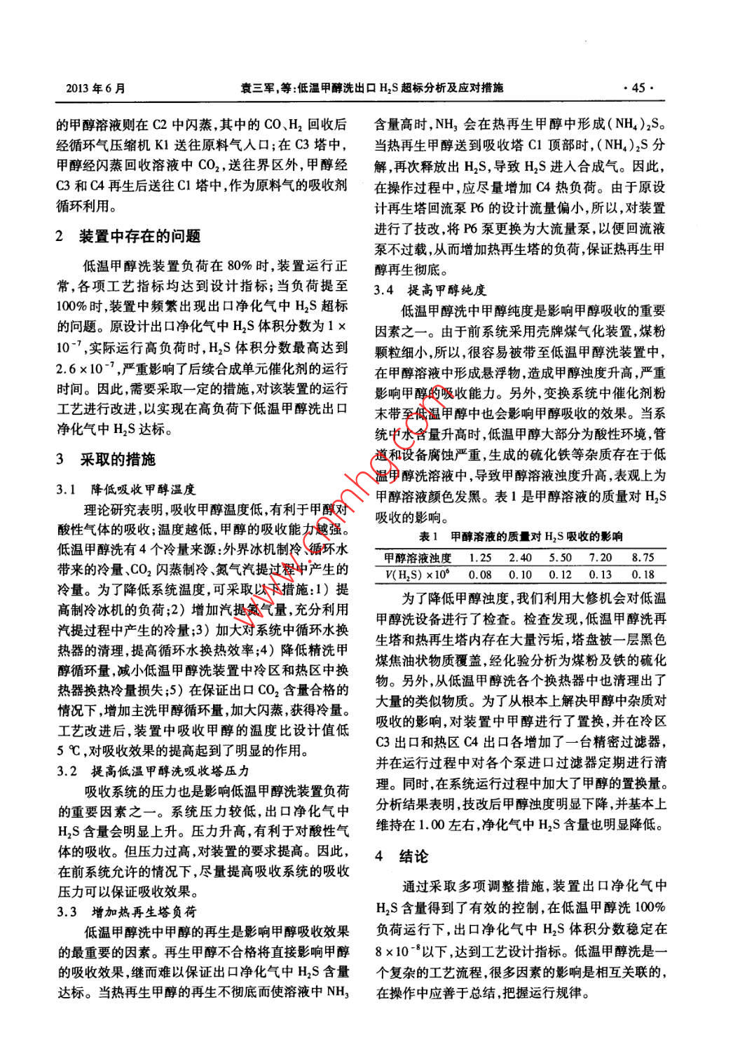低溫甲醇洗出口H2S超標(biāo)分析及應(yīng)對措施