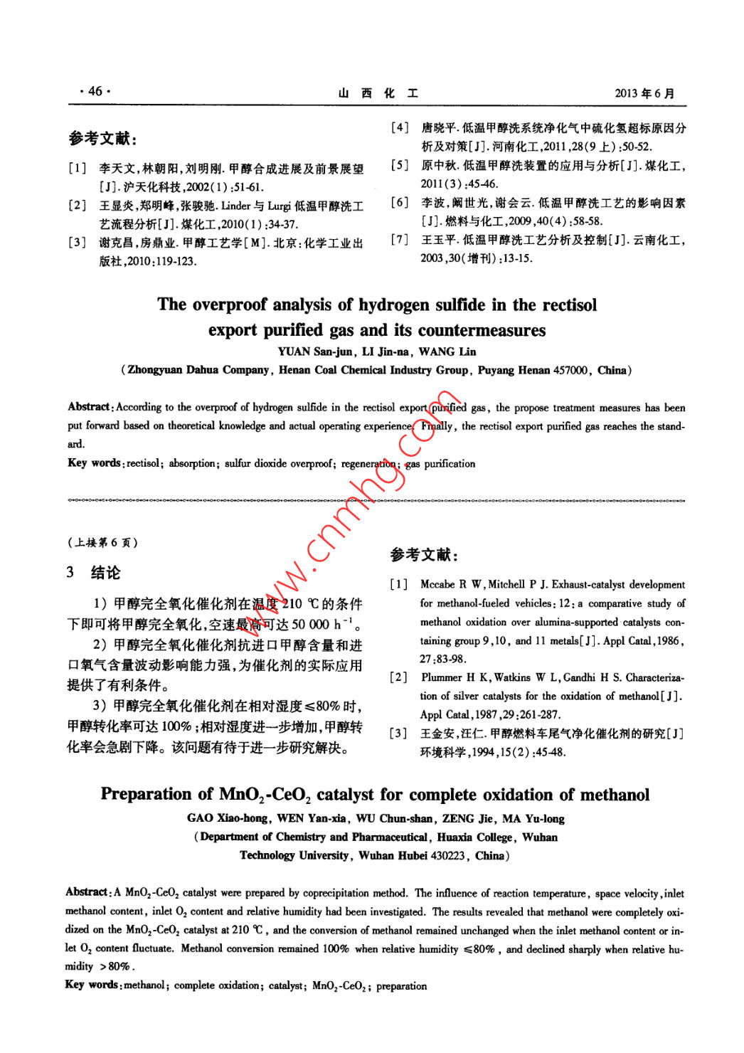 - 期刊名字:山西化工