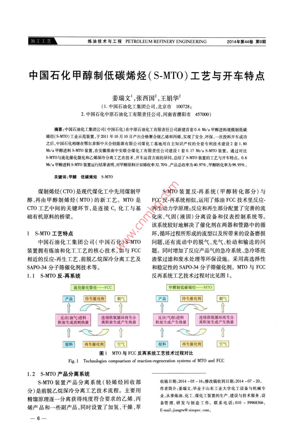 中國石化甲醇制低碳烯烴(S-MTO)工藝與開車特點