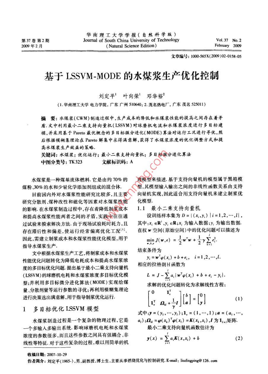 基于LSSVM-MODE的水煤漿生產(chǎn)優(yōu)化控制