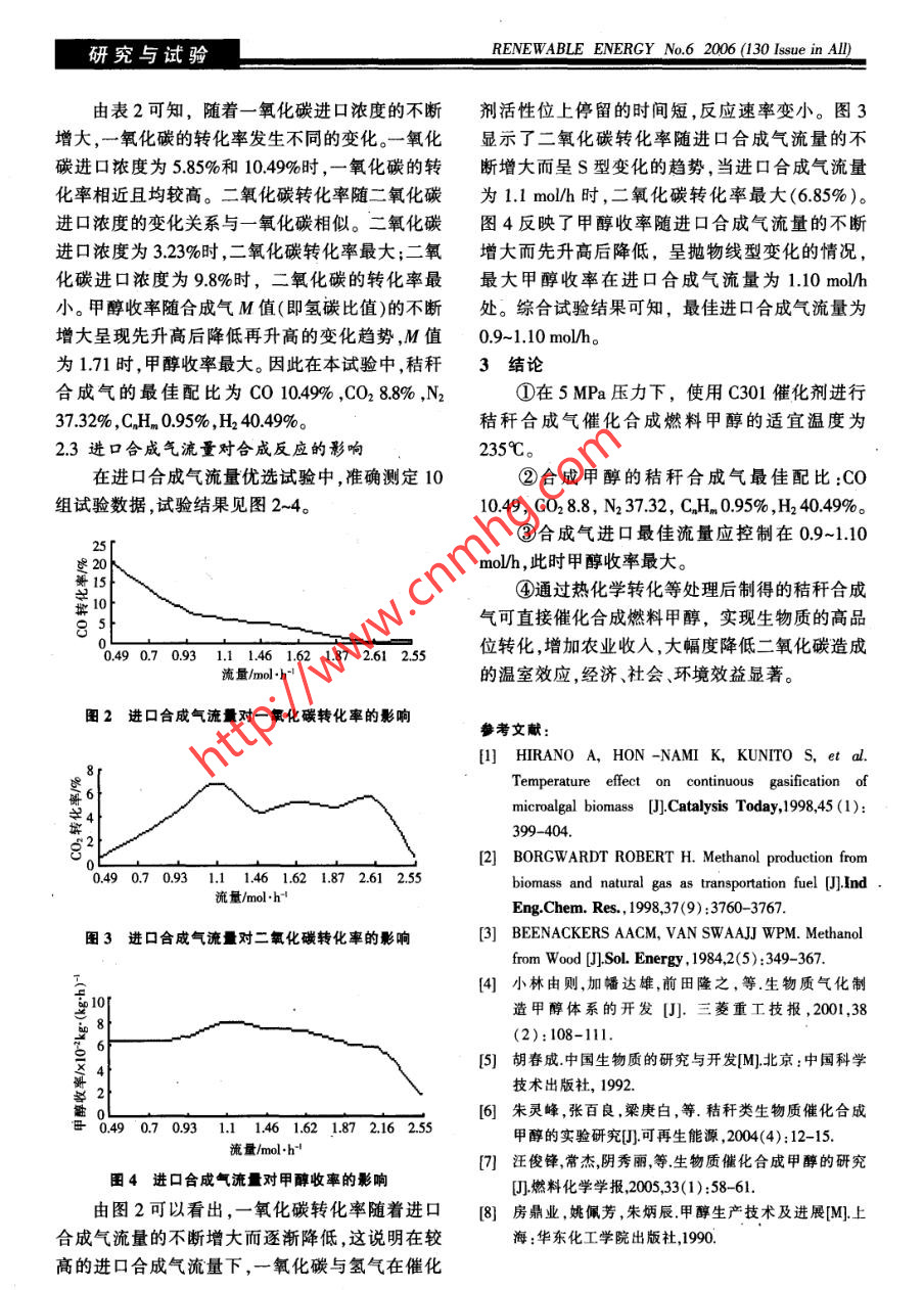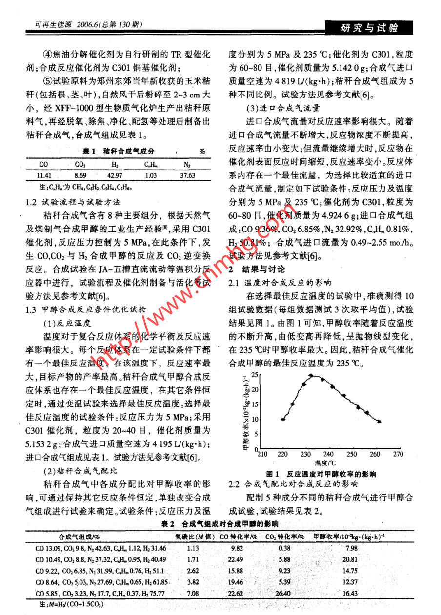 秸稈燃氣合成甲醇的優(yōu)化試驗研究