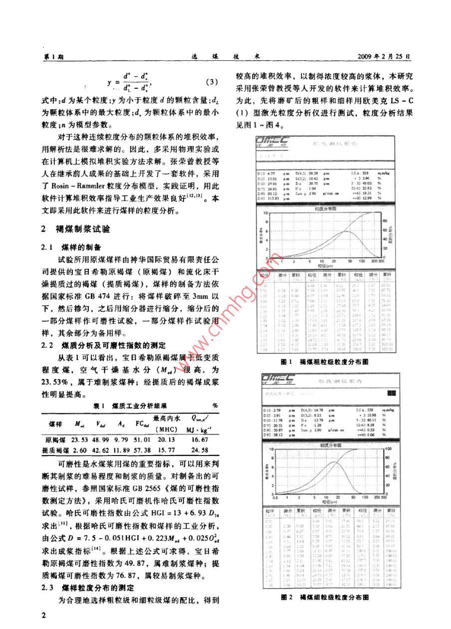 粒度分布對提質褐煤水煤漿性能影響的研究