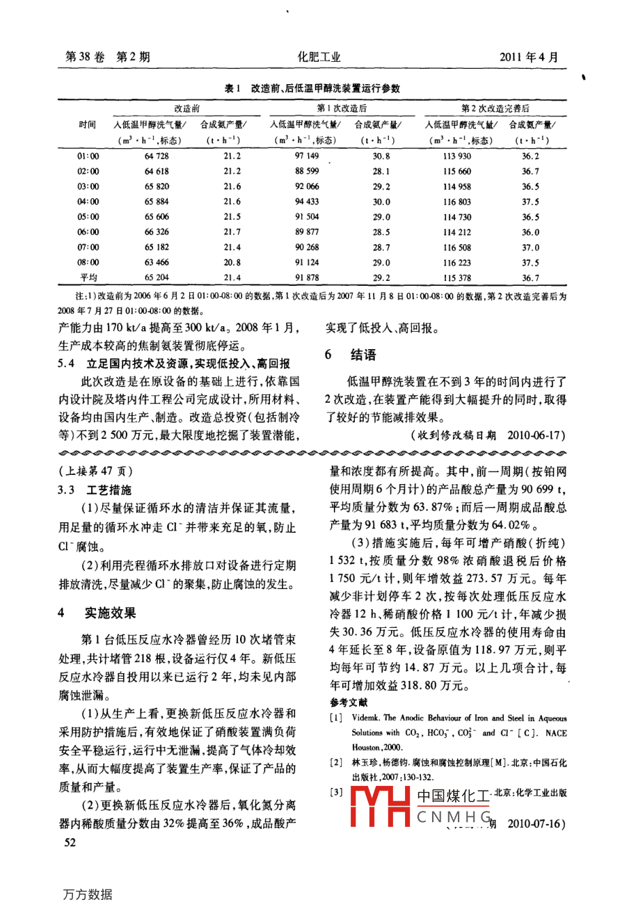 低溫甲醇洗裝置擴(kuò)產(chǎn)改造總結(jié)