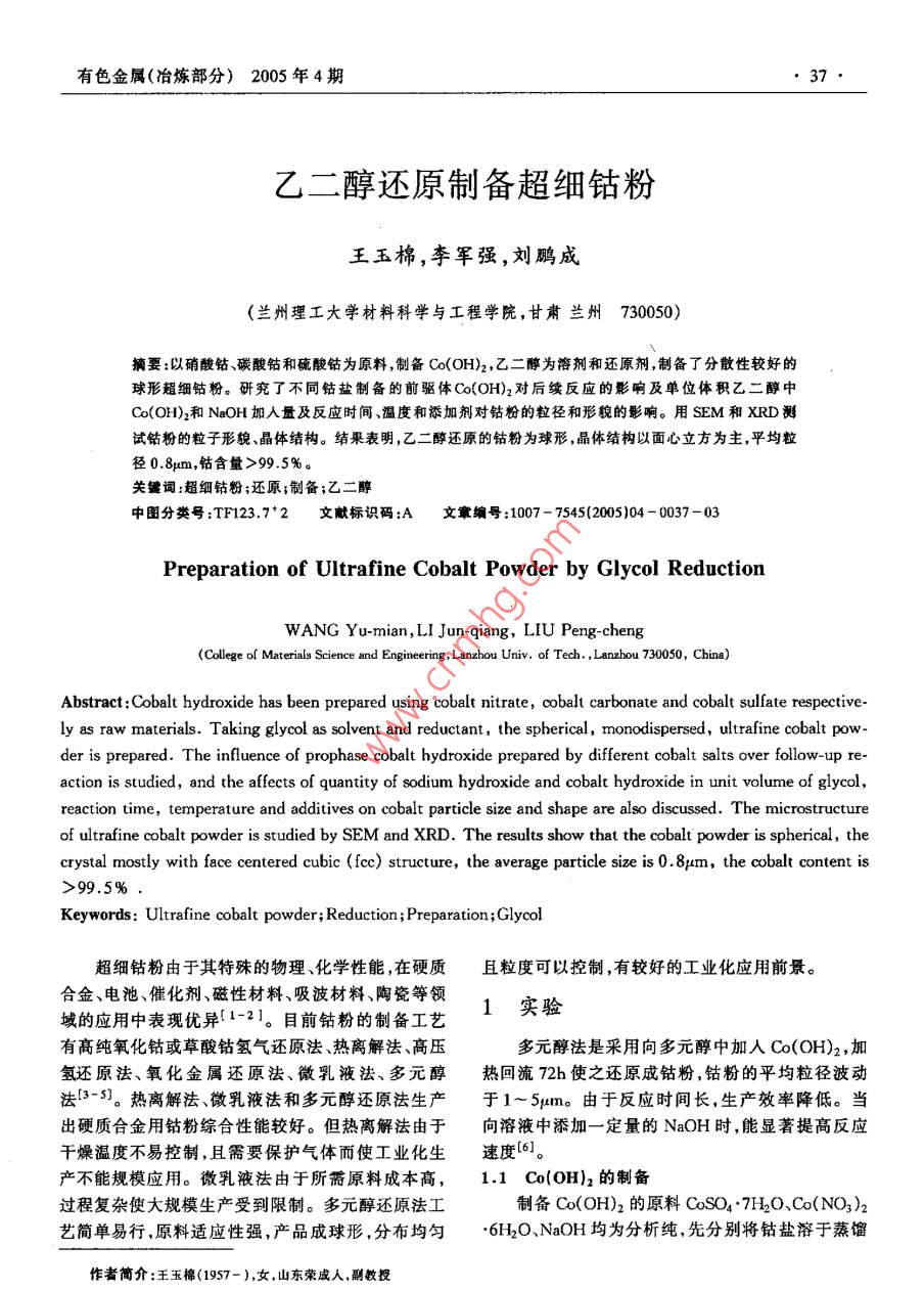 乙二醇還原制備超細(xì)鈷粉