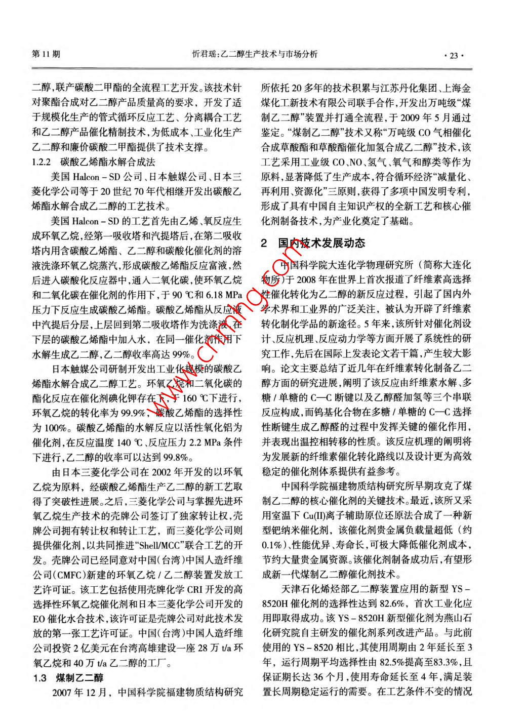 乙二醇生產(chǎn)技術(shù)與市場分析