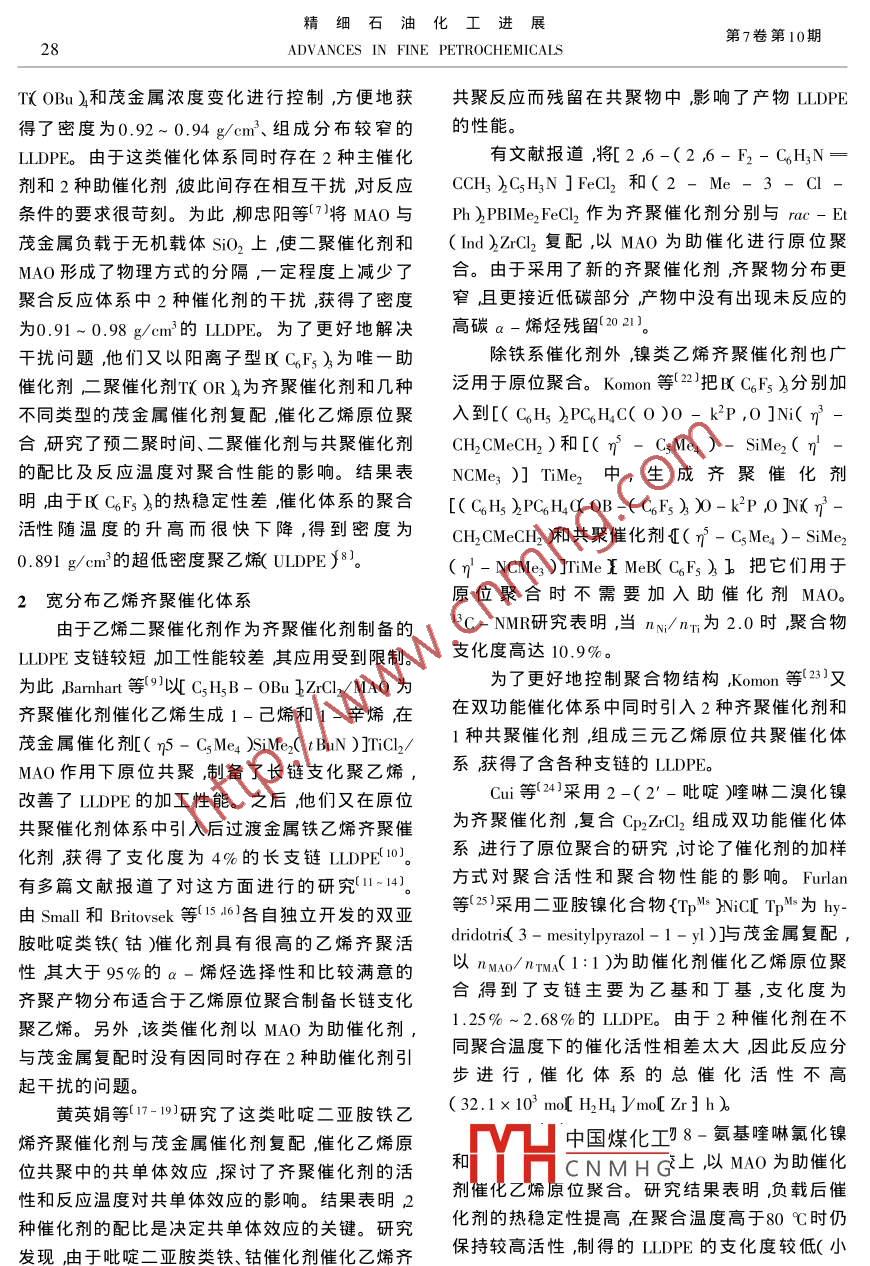 乙烯原位共聚制線性低密度聚乙烯研究進(jìn)展