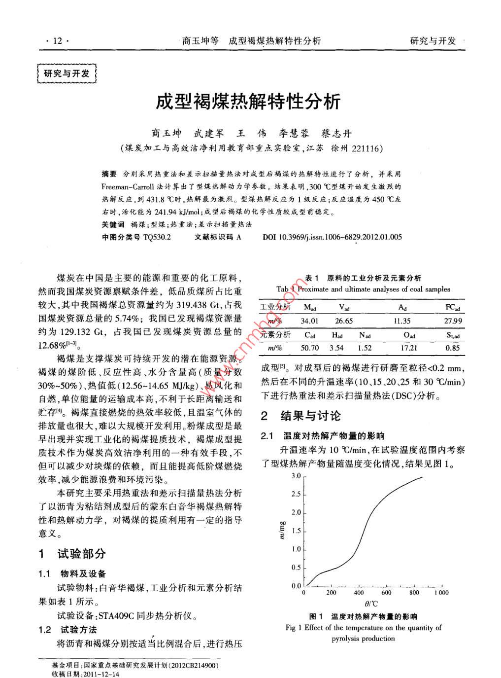 成型褐煤熱解特性分析
