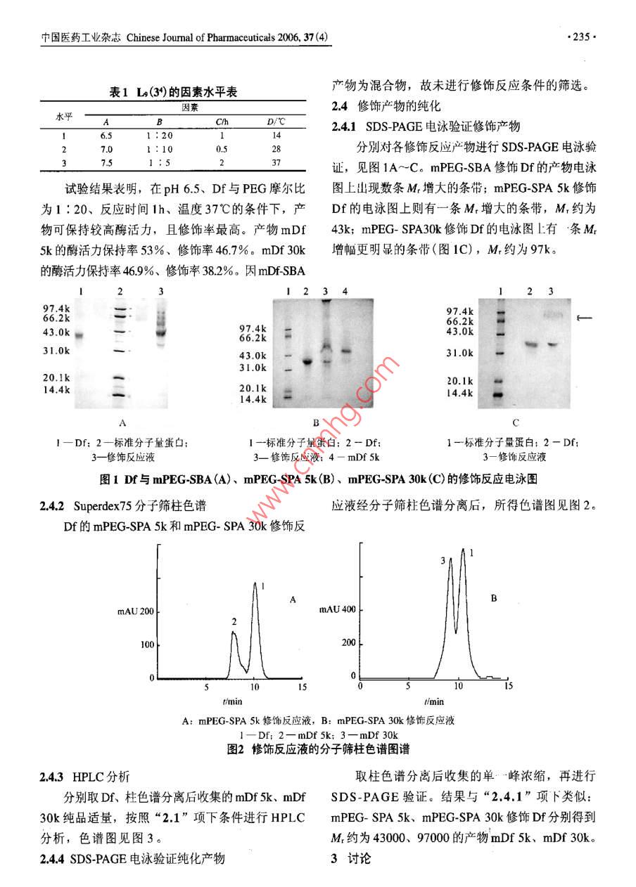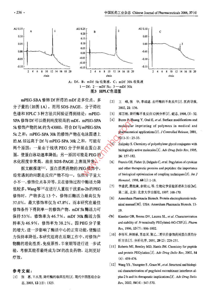 降纖酶的聚乙二醇修飾及產(chǎn)物的純化研究