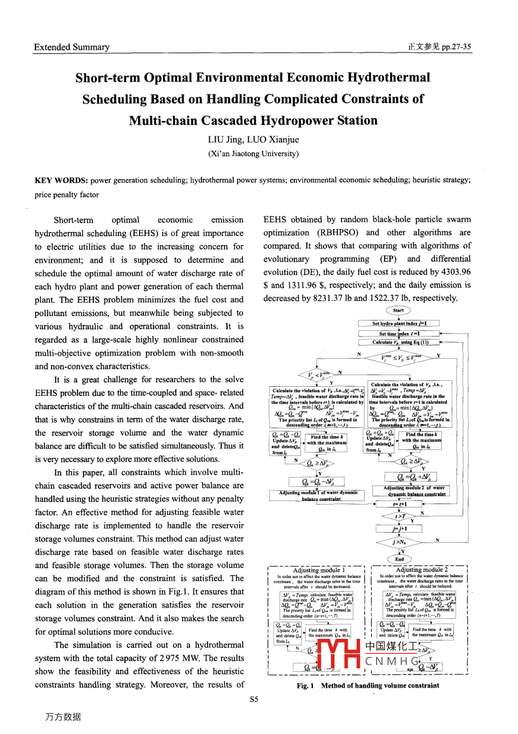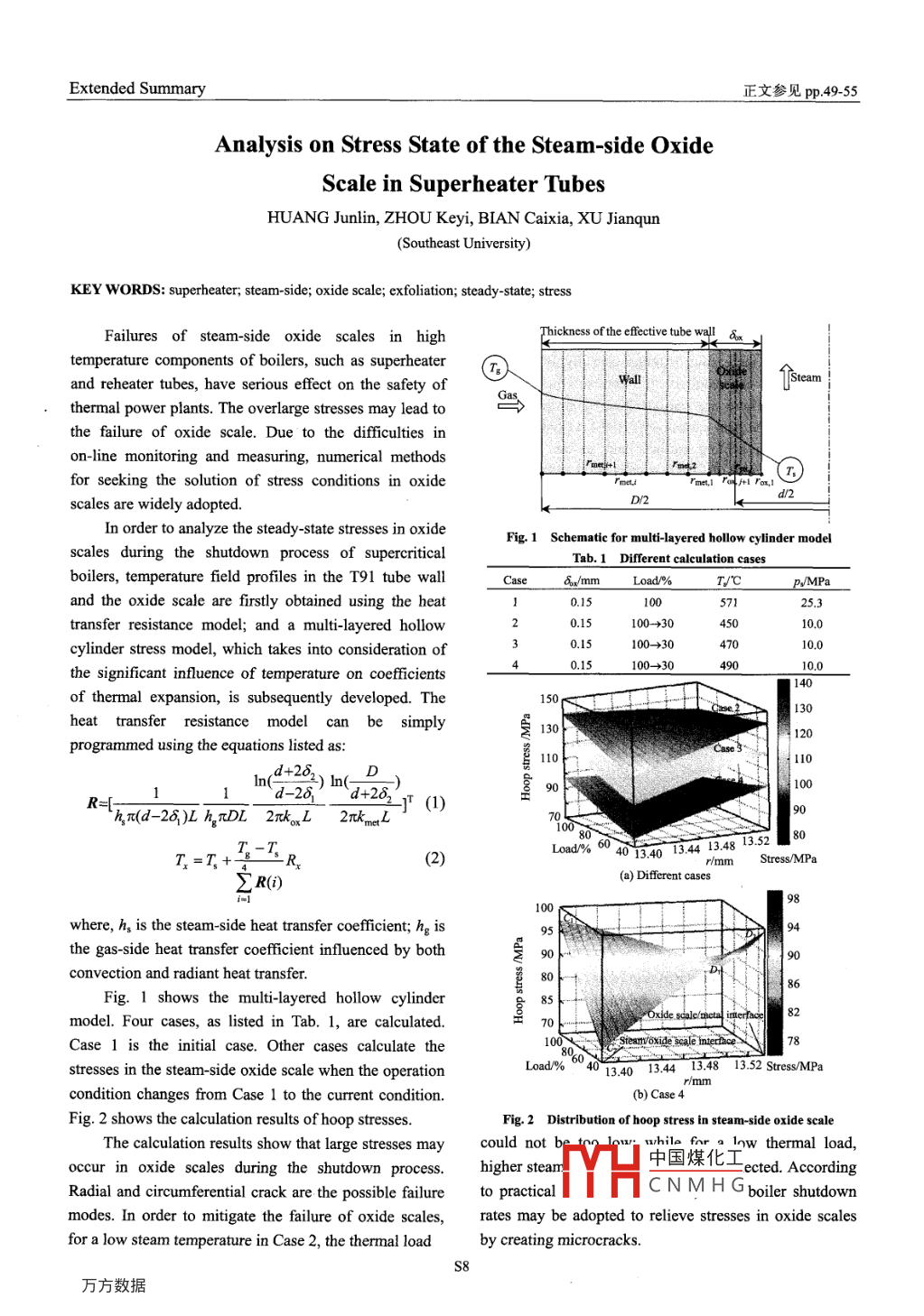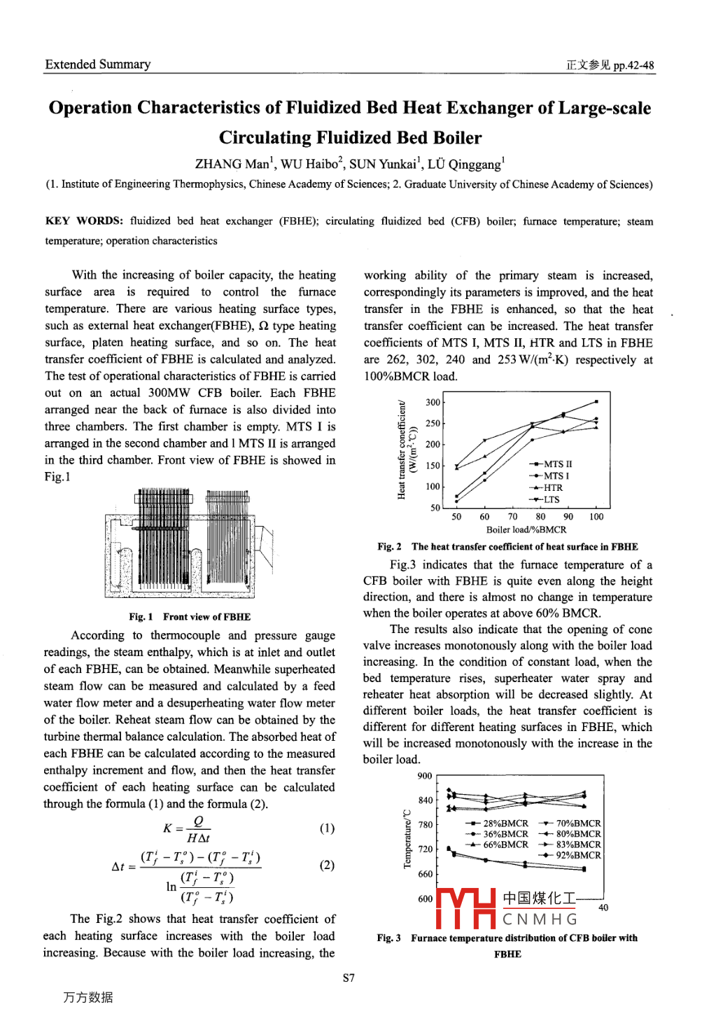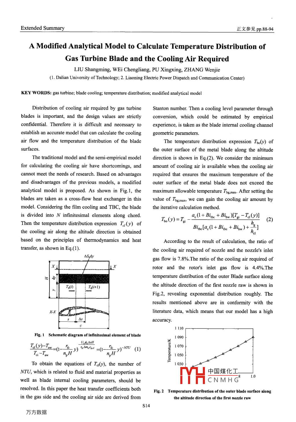 Extended Summary正文參見pp.1-6Off-design Characteristics of IGCC System Based on Two-stageCoal-slurry Gasification TechnologyLIU Yaoxin, WU Shaohua, LI Zhenzhong, WANG Yang(I. Harbin Institute of Technology; 2. National Power Plant Combustion Research Center)KEY WORDS: integrated gasification combined cycle (IGCC); two-stage: coal-slurry gasification technology; off-design; systemThe integrated gasification combined cycle system pumped into the gasifier together with most of(GCC)is often operated at off-design condition which coal-slurry at the first stage to produce raw syngas.Thenhas attracted much attention. But little research has been the other coal-slurry is sent at the second stage fordone on the IGCC system based on the two-stage coal- gasification. The raw syngas enters a RSC and a CSC inslurry gasification technology which can increase the series to recover the sensible heat, a cleanup unit iscold gas efficiency and decrease the oxygen arranged downstream of the CSc to clean the rawconsumption.syngas. The clean syngas drives the gas turbine toThe model of a 200MW level IGCC system based generate power. The exhaust gas from the gas turbine ison the two-stage coal-slurry gasification technologyused to generate steam in the hrsG and the steamestablished. The effects of gas turbine load, air drives the steam turbine to produce additional powerseparation unit integrated coefficient(Xas), atmosphereTable I summarizes the operating conditionstemperature and atmosphere pressure on the performanceTab 1 Design parameters of IGCC systemof IGCC systems are investigatedThe system model covers the entire IGCC system,GasifierGasificationcomprising an air separation unit (ASU), a gasifier, a20001310capacity/(t/d)radiant syngas cooler(RSC), a convective syngas coolerPurity of oxygen /%(CSC), a cleanup system, a gas turbine, a heat recoverconcentration /%Carbon conversionHigh-pressuresteam generator(HRSG), a steam turbine and auxiliary505/10systems. Figure 1 shows the configuration of the IGCc Syngas temperatureSyngas temperature outsystem modelout of rsc/℃Intermediate-pressur 297/2.695002,3e steam/(C/MPa)℃MPLow-pressure 217/0.356 Steam turbine exhaust 91Clean syngasThe results show that gross and net electricy is firstly increased and then decreased withatmosphere temperature increasing or gas turbine loaddecreasing. The lower gross electric efficiency isTnobtained under the operation condition of higher air1--ASU: 2-Gasifier: 3--RSC: 4--CSC:separation unit integrated coefficient. Atmosphere5-Cleanup system: 6--Saturator: 7--Gas turbine: 8--HRSG:9--Steam turbine: 10--Condenserpressure has little effect on system efficiency. TheFig 1 Schematic diagram of the IGCC system model application of two-stage coal-slurry gasificationIn this model, a coal-water slurry entrained flow technology h中國煤化工 ove IGCOgasifier is selected. Air is decomposed into oxygen and system performCNMHGngnitrogen in the ASU, and the nitrogen is re-injected into The results of this stuay wiI provide rererence for designthe gas turbine combustor. The separated oxygenand operation of the IGCC power plantExtended Summary正文參見pp7-13Research on Systems Coupled with Gas Turbines and boilers for powerSupply Efficiency Improvement of Thermal Power PlantsLI Jianfeng, LI Bin, YAO Guofu, KOU Jianyu, ZHANG Quansheng, HUANG Haitao, SHENG JianhuaYANG DI WANg Yuan(1. Technology Development Service Center, China Electricity Council; 2. North China Electric Power University3. Inner Mongolia Power Exploration Design Institute)KEY WORDS: gas turbine; boiler unit; thermal cycle; thermal efficiency; power consumption rate; coal consumption; couplingIn order to reduce coal consumption of thermal exchanger (hTHE) to be further heated. The highpower plants, through transformation of the technology temperature and high pressure air from HTHE flows intoof aircraft engines, a new system coupling a gas turbine the turbine and expands to output work in the turbineand a boiler is proposed to reduce electrical consumption The air discharged by the turbine flowing into furnaceof the fans and the other auxiliary equipments in power chamber can be used as the secondary air of the boiler. Inplants, so the coal consumption in thermal power plants addition to driving the compressor and the first andcan be reduced at the same timesecondary fans of the boiler, the remaining work outputThe coupling system in shown in Fig. 1, describing from the turbine can be used to drive a small generatorthat most of the air is droved by the fans and flowing which can reduce plant electrical consumptioninto the low-temperature air pre-heater as the primaryTaking into account the heat balance of the airand secondary air of the boiler. At the same time, a small pre-heater, the performance prediction calculation modelamount of the air compressed by the compressor flows of the coupling system is established and theinto the high-temperature air pre-heater for preheating, performance of the system is calculated. The results ofand after that flows into the high temperature heat the calculation and analysis show that the performanceof the system is impacted by the temperature of exhaustwatergas significantly. Besides using the gas turbine to drivethe compressor and the primary and secondary fans of12e boiler, the electrical power output from the systemcan reduce the station service power consumption rate at1.64%, when the inlet temperature of the turbine is 700Cthe temperature of flue gas remains 130C and the bestvalue of the ratio of the air volume flowing through thefans and the air volume flowing through the compressoris 4.29%. In this condition, the total efficiency of thecoupling system could be improved by more than 0.5%,and the coal consumption of the power generating unitreduceg/(kW.h)ceI--Fan; 2--Compressor; 3--High temperature heat exchanger; 4--Turbine;The technology of the HTHe, the compressor and5-Furmace chamber: 6--Over heater re-heater: 7--Coal eco