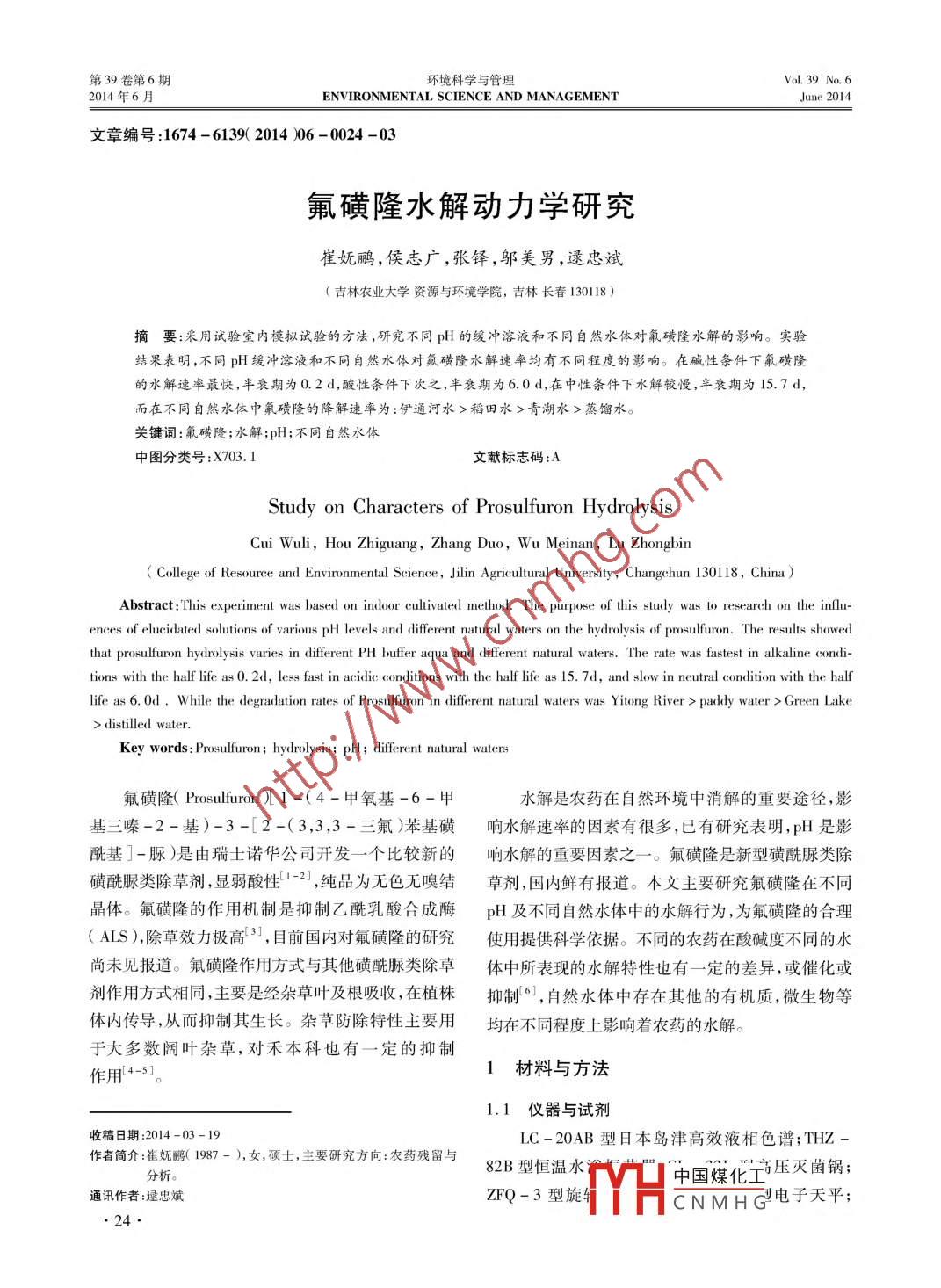 氟磺隆水解動力學研究